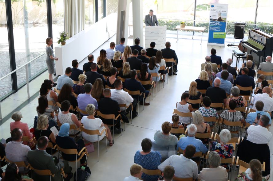 Innenminister Caffier würdigte in seiner Ansprache das besondere Engagement, das mit einem Studium neben der Arbeit verbunden ist, und wünschte den Absolventinnen und Absolventen viel Erfolg für den beruf-lichen Werdegang. Die Aussichten für die Absolventinnen und Absolventen sind bestens, weil gute Fachkräfte in der öffentlichen Verwaltung dringend gebraucht werden. So lobte der Innenminister die Eigeninitiative der VWA und zitierte Otto von Bismarck: „Mit schlechten Gesetzen und guten Beamten läßt sich immer noch regieren. Bei schlechten Beamten aber helfen uns die besten Gesetze nichts.“
