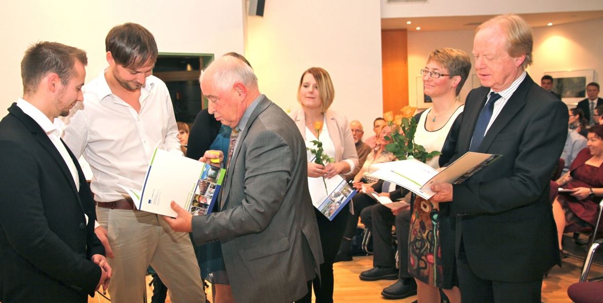 PräsVG a. D. Hennig von Alten bei der Diplomübergabe zusammen mit Geschäftsführerin Annette Sewing und Univ.-Prof. Armin Rohde (v. l.).